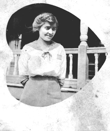 Grandma in a Valentine's Day cutout, wearing a late-model middie blouse.