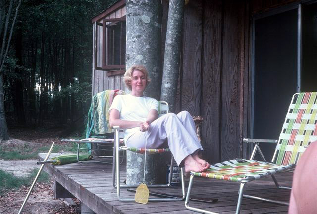 Marilyn at the cabin near Bethany Beach, Delaware. That patch of pink at extreme lower-right looks like someone's back -- or maybe, uh, something else.