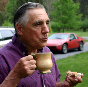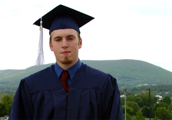 This was the climax of our weekend, with Penn State grad William R. Dunkle modeling his cap and gown. That's Mount Nittany in the background.