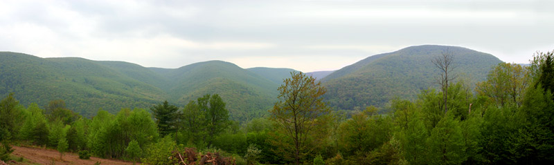 A panoramic photo of the view from Short Mountain, up the hill from Mack and Donna's home between 1947 and 1972. This was what Mack often saw while hiking back down the mountain from hunting deer or squirrel "up behint the house," as he put it