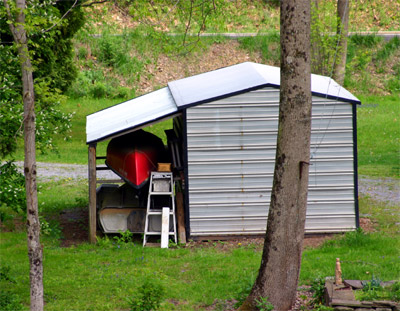 A well kept canoe at the Williamson cabin. (What on earth is the little brown object at lower right? It looks suspiciously like a Mrs. Butterworth syrup bottle.)