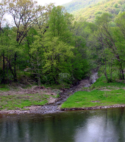 The place the Nepley Fork empties into Pine Creek -- seen from the Black Bridge.