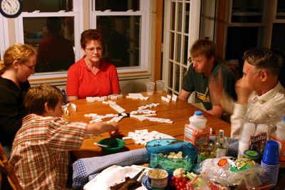 As usual, the dominoes tournament lasted late into the night. It was interrupted only twice: once when someone who shall remain nameless threw up all over the bathroom and once when the washer wouldn't work. (The man at right fixed it.)