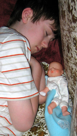 While Tom slept, John and Bill tucked the much-fabled doll into his bed and snapped a picture. Tom is now considering options for revenge.