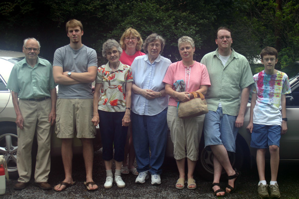 Outside the house: Mack, BIll, Betty, Mary, June, Denise, John, Tom