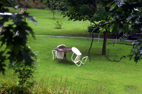 Vintage lawn chairs at the Williams place, in the shadow of the Black Bridge